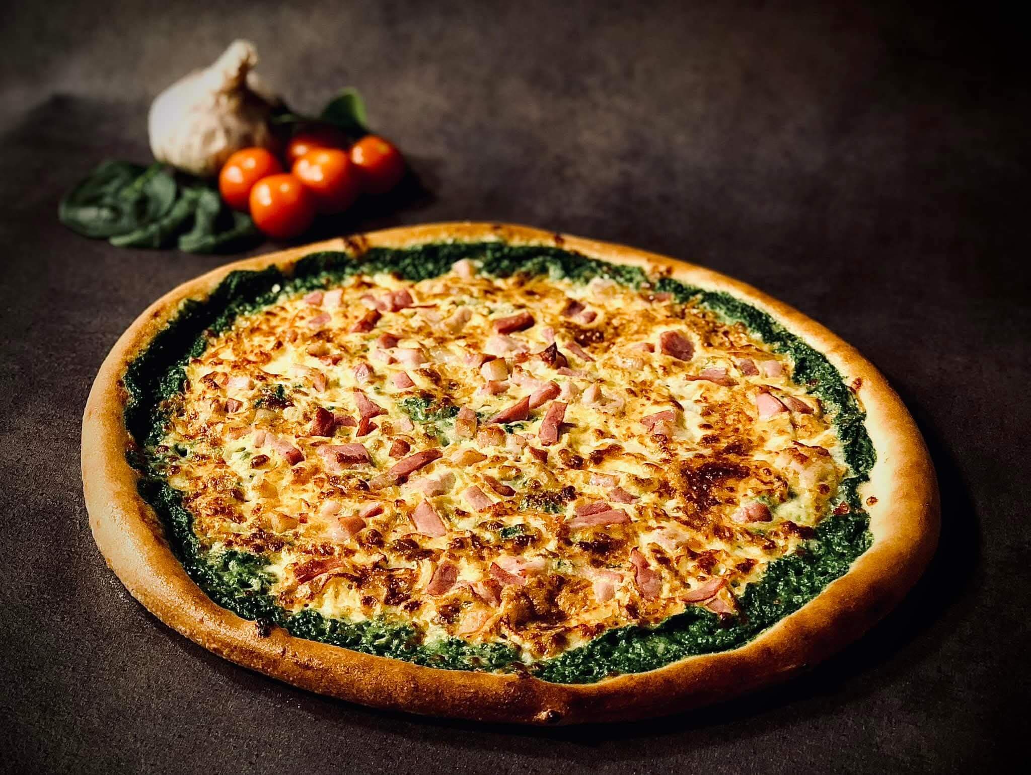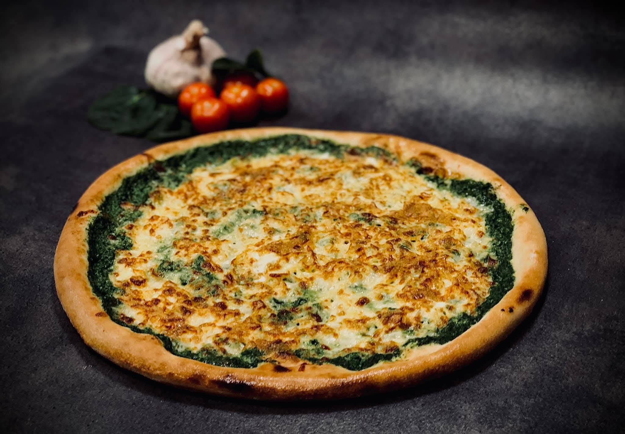 Smetana, Mozzarella, Česnek, Žampióny, Parmazan, Baby špenát